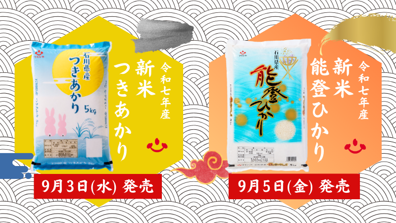 令和7年産 新米『つきあかり』『能登ひかり』発売のお知らせ【9月3日(水)、5日(金)発売】