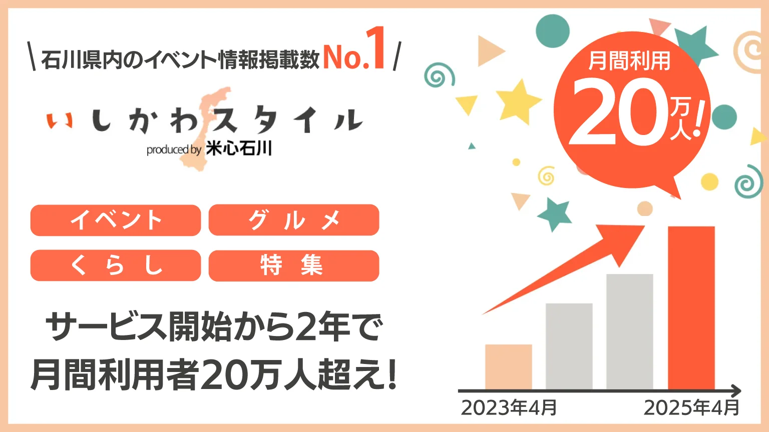 | いしかわスタイルについて | 「いしかわスタイル」は「伝えたい」と「知りたい」をつなげる石川県に特化した地域情報サイトです。 石川県にお住まいの方や石川県に興味のある方の「知っていれば行っていたのに、、、買っていたのに、、、応募していたのに、、、」といった、知らないことによる「もったいない」を解消し、新しい経験や体験を通してみなさんの暮らしと地域を豊かにすることに少しでも貢献できればと思っています。 |