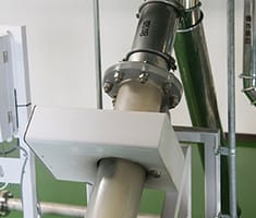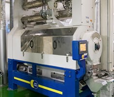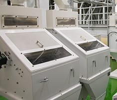 できあがった精米を1トンずつステンレスのタンクで丁寧に保管・移動します。