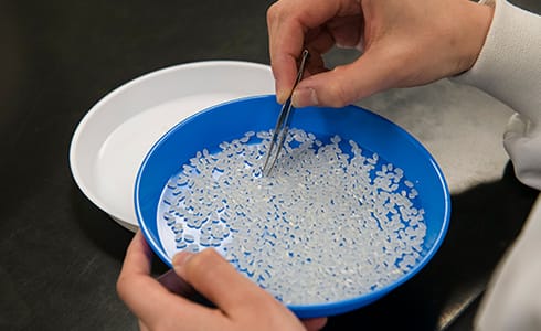 精米のまわりの糠層を取り除き、洗わずに食べられるよう無洗米化します。