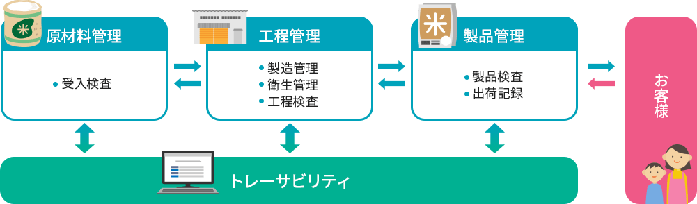 精米センター(精米、無洗米の製造)、炊飯加工センター(炊飯加工品の製造)において、国際的な食品安全マネジメントシステムである「FSSC22000」の認証を取得し、この規格をベースに衛生管理システムを構築し実践しています。